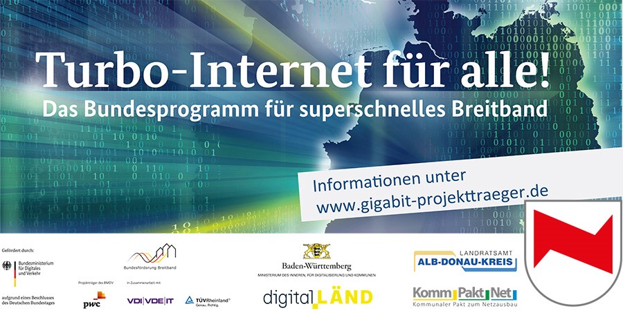 Die Gemeinde Emerkingen erhält für den Breitbandausbau "weiße Flecken" eine Zuwendung aus dem Förderprogramm des Bundes - gefördert durch das Bundesförderprogramm Gigabit 2.0. Weitere Informationen zum Projektträger erhalten Sie hier.